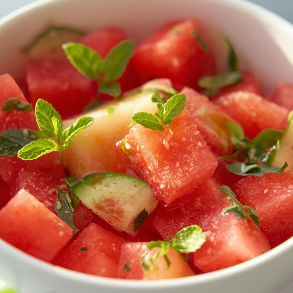 Salada de melancia com pepino e hortelã
