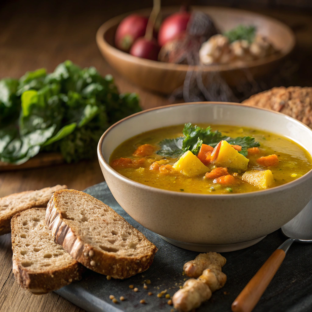 - Jantar: sopa de legumes com cúrcuma e fio de azeite extravirgem.