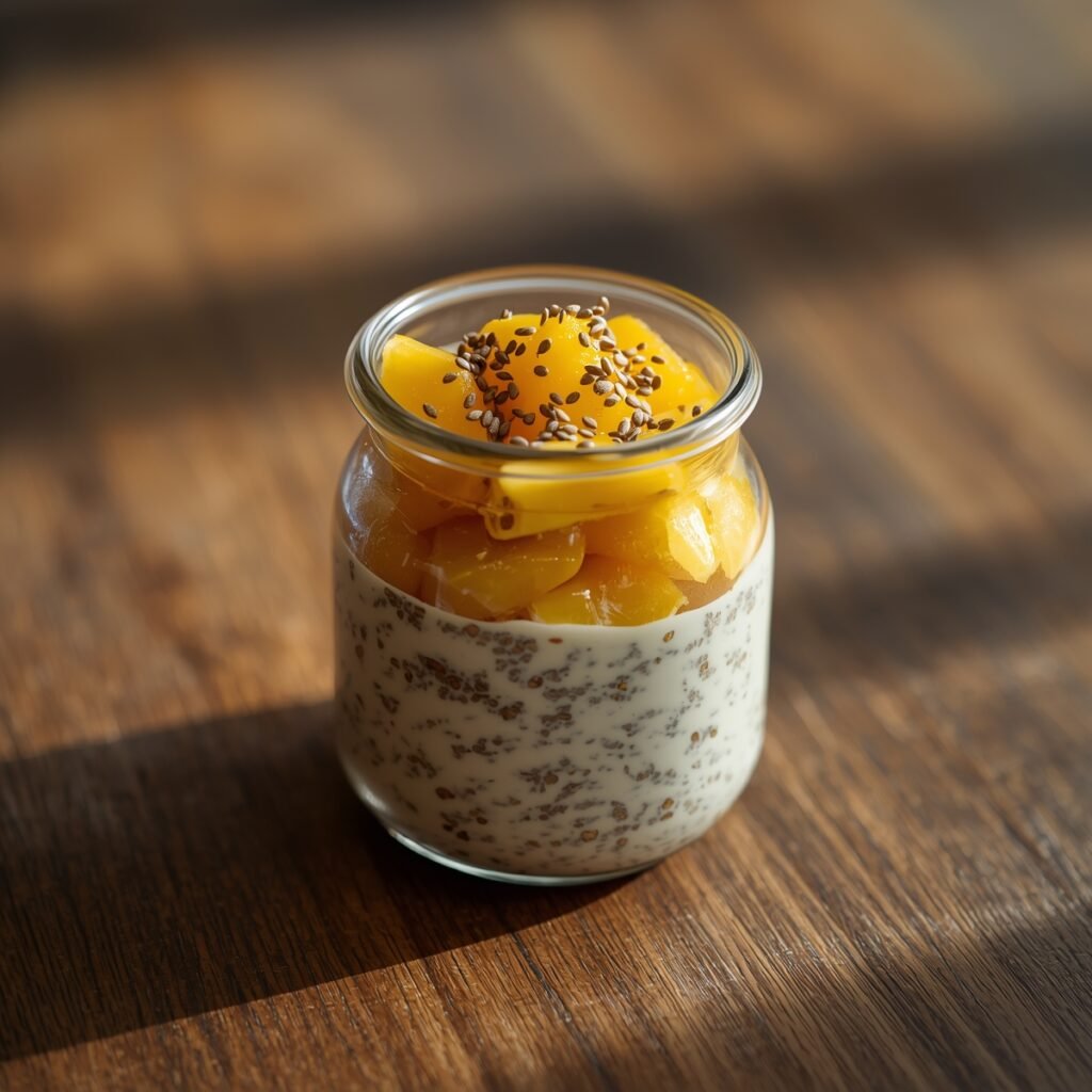 - Ingredientes: aveia em flocos, leite ou bebida vegetal, manga em cubos, chia e mel.